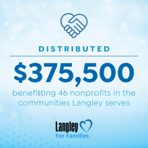 Langley Federal Credit Union has a long history of community involvement and charitable giving dating back to the founding of the credit union in the 1930’s. With a commitment to making a difference in the communities it serves, Langley for Families Foundation was launched in 2014 to support causes and charities benefiting children and families.