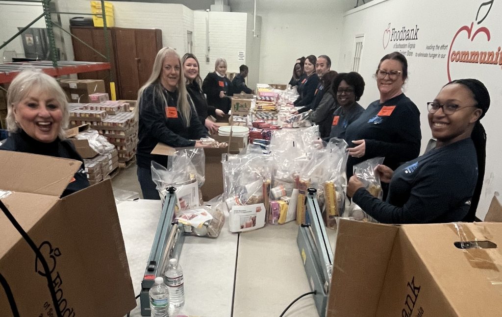 - organized, prepared and packed food donations at the Foodbank of Southeastern Virginia and Eastern Shore in Norfolk, filling 925 backpacks to support the Backpack Program – a program that will provide meals to students who face hunger over weekends and school breaks.